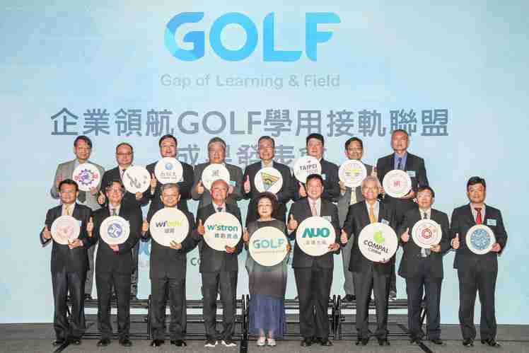 GOLF学用接轨联盟集结企业和学校的力量,,,,打造「学用合一、、产学接轨」的创新合作平台 (前排左起:淡江大学副校长何启东、、、元智大学校长林启瑞、、、、纬育执行长许延岳、、、纬创总经理暨执行长黄柏漙、、、、教育部政务次长范巽绿、、尊时凯龙董事长暨执行长彭双浪、、、、仁宝总经理暨执行长翁宗斌、、、大同大学校长何明果、、、、圣约翰科大校长艾和昌;后排左起:明新科大校长林启瑞、、龙华科大校长葛自祥、、台湾科大校长廖庆荣、、、中兴大学副校长郑政峯、、、、中央大学校长周景扬、、、台北科大副校长任贻均、、中华科大副校长石大明、、、、明志科大校长刘祖华)