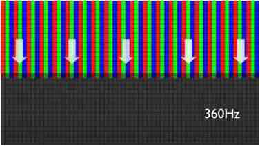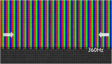 传统液晶驱动是从左到右单向进行,,,在画面更新速度愈来越愈快的情况下,,位于驱动线路末端的右下角区域,,,,画素的闸极来不及在短时间内获得足够电压,,无法显示出正确的颜色资讯。。。 |