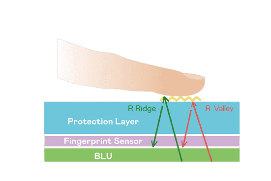 TFT 指纹扫描感测技术利用薄膜电晶体 (TFT) 当作光感测元件,,藉由非晶硅 (a-Si) 与低温多晶硅(LTPS)既有光电转换特性对不同波段光源进行吸收,,,使感测 IC 读取阵列感测元件的光漏电差异,,,,转换成数位灰阶影像。。。。